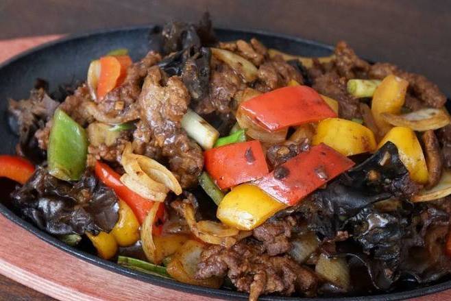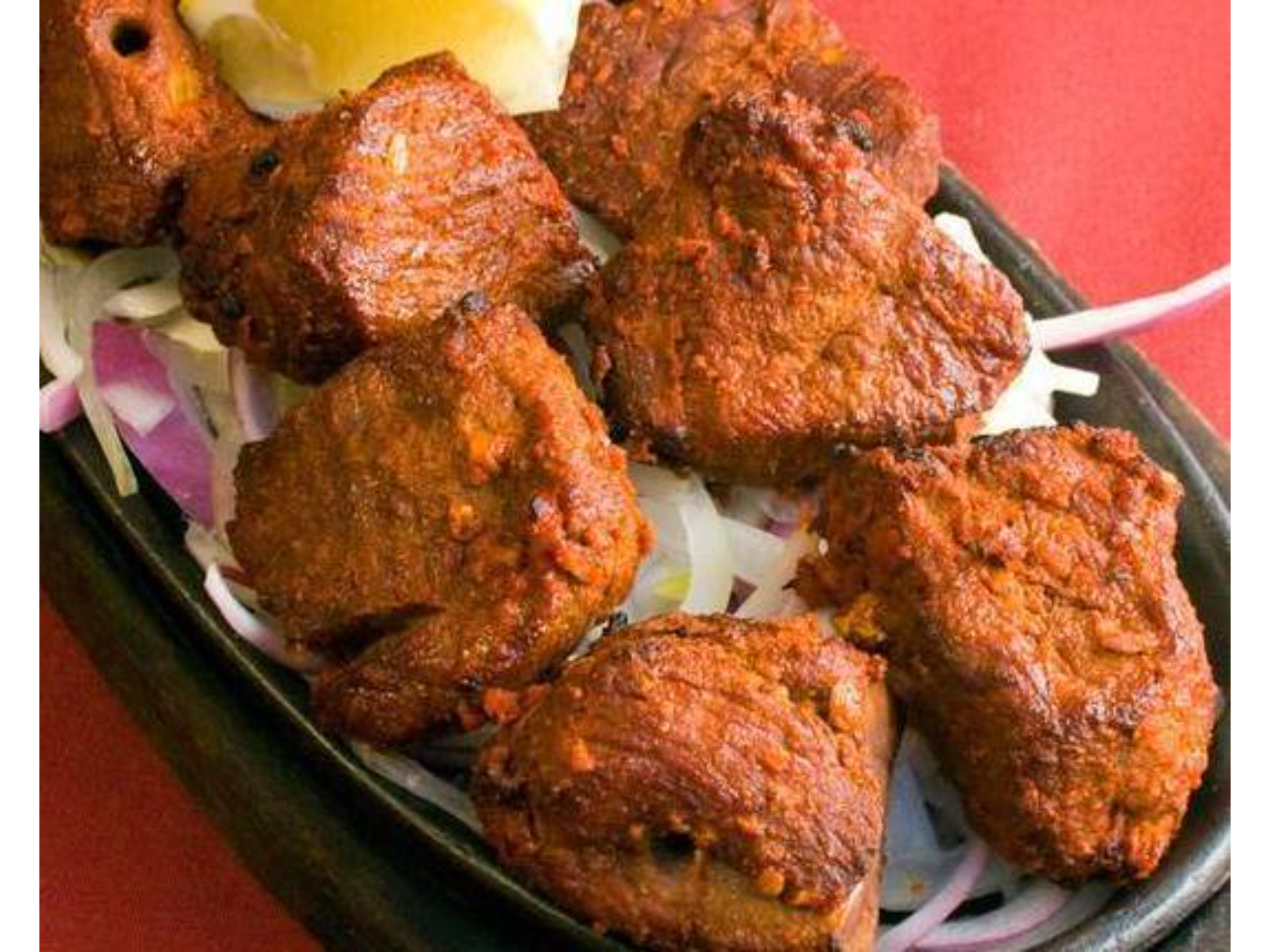 Grilled beef chunks marinated with cloves, cumin & cashew; served with roasted onions, capsicum & mushrooms.