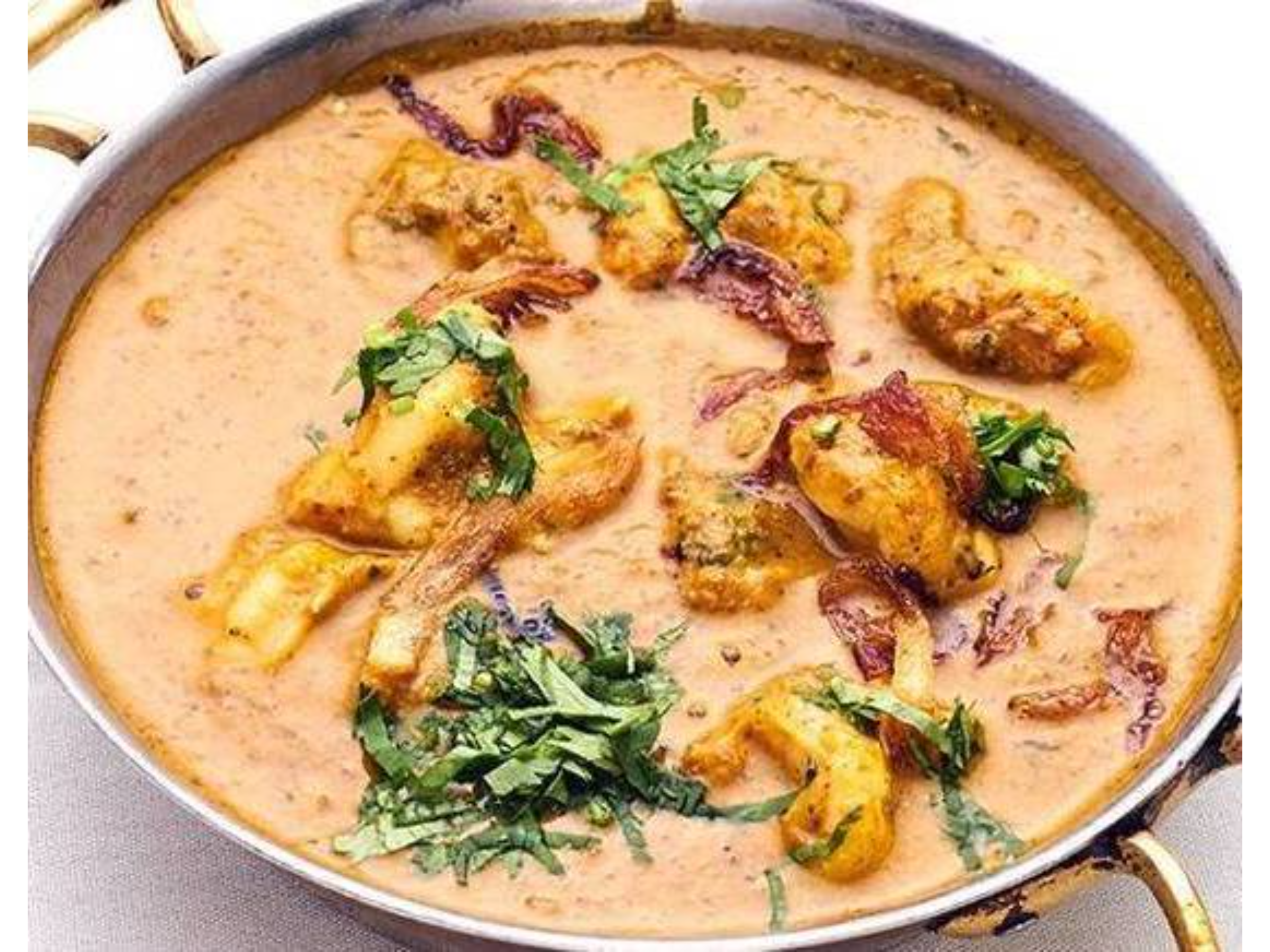 South Indian style prawns cooked in coconut milk & cashew nut curry with mild spices.
