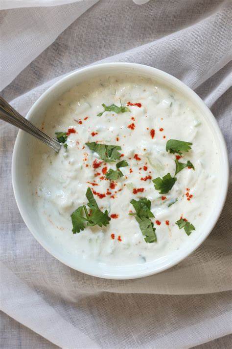 Home made natural yogurt with chopped soothing cucumber & flavourful chat masala.