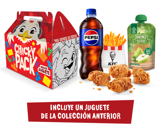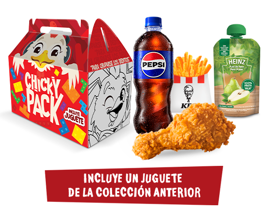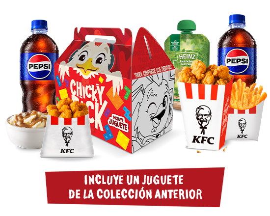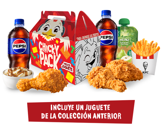 1 PIEZA DE POLLO, ACOMPAÑAMIENTO PEQUEÑO BEBIDA 600ML, INCLUYE UN JUGUETE DE UNA COLECCIÓN ANTERIOR