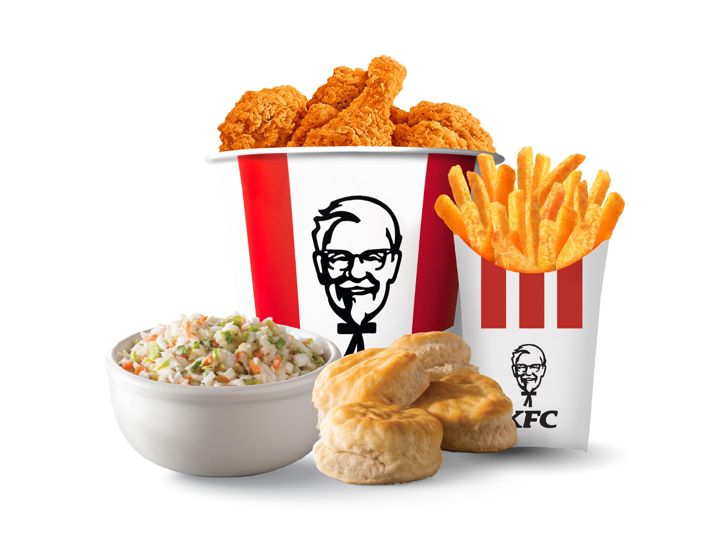 10 PIEZAS DE POLLO, 2 ACOMPAÑAMIENTOS FAMILIARES, 4 BISCUITS