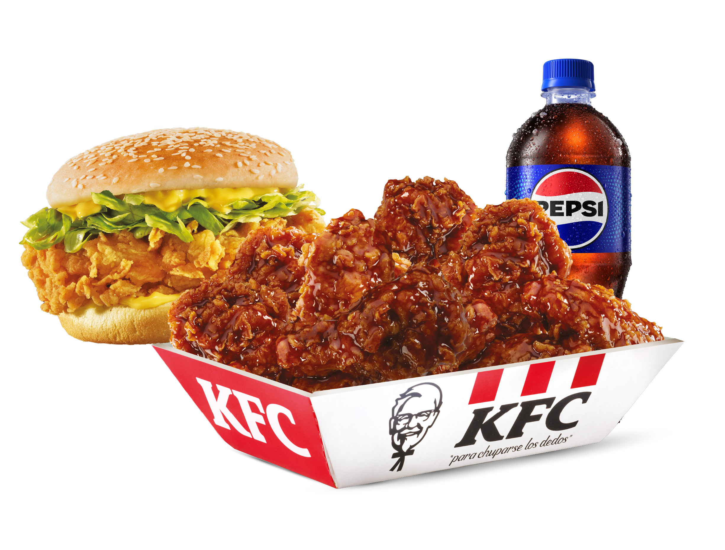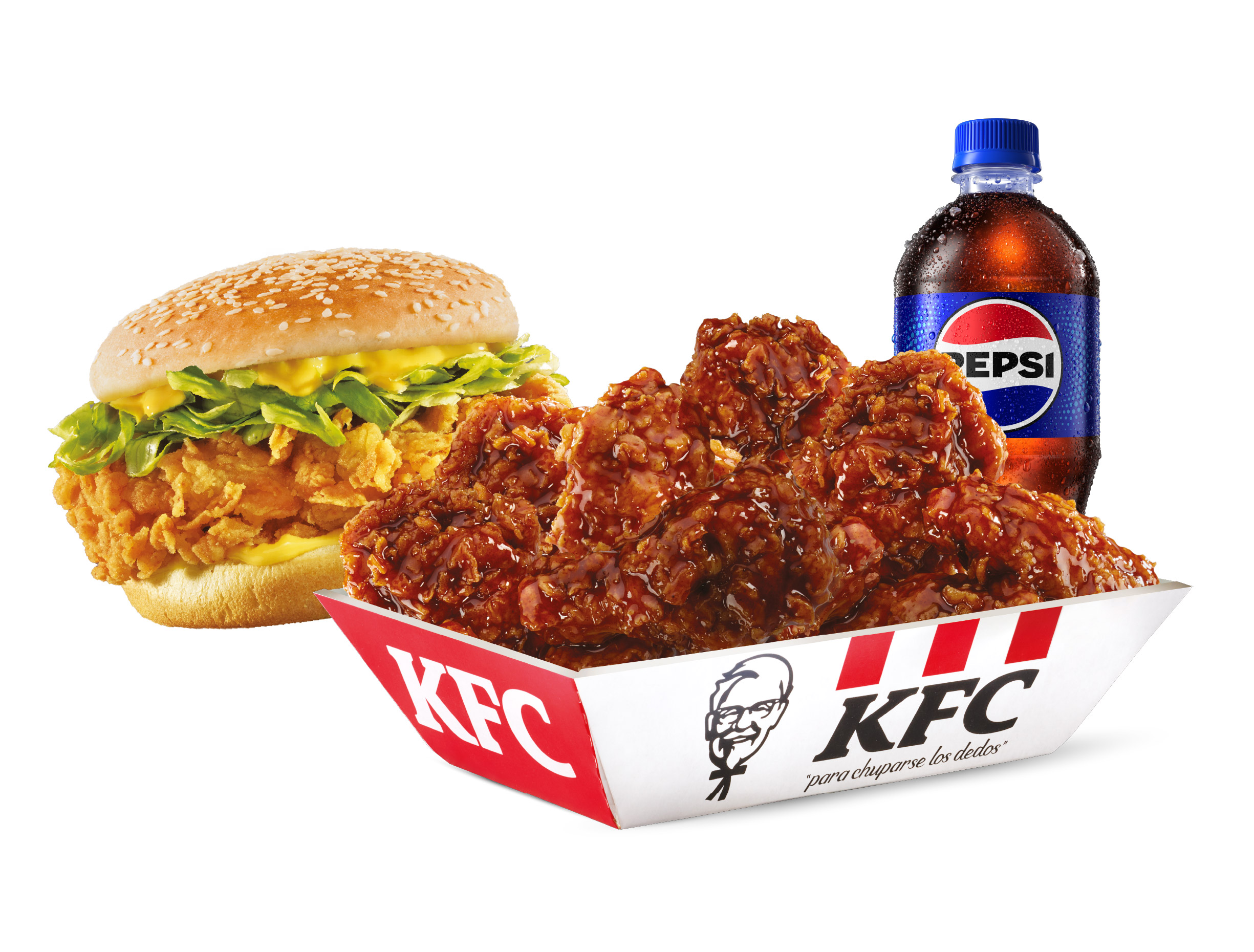 Hamburguesa Kentucky Sandwich, 1 Acompañamiento individual, 1 Bebida de 600ml