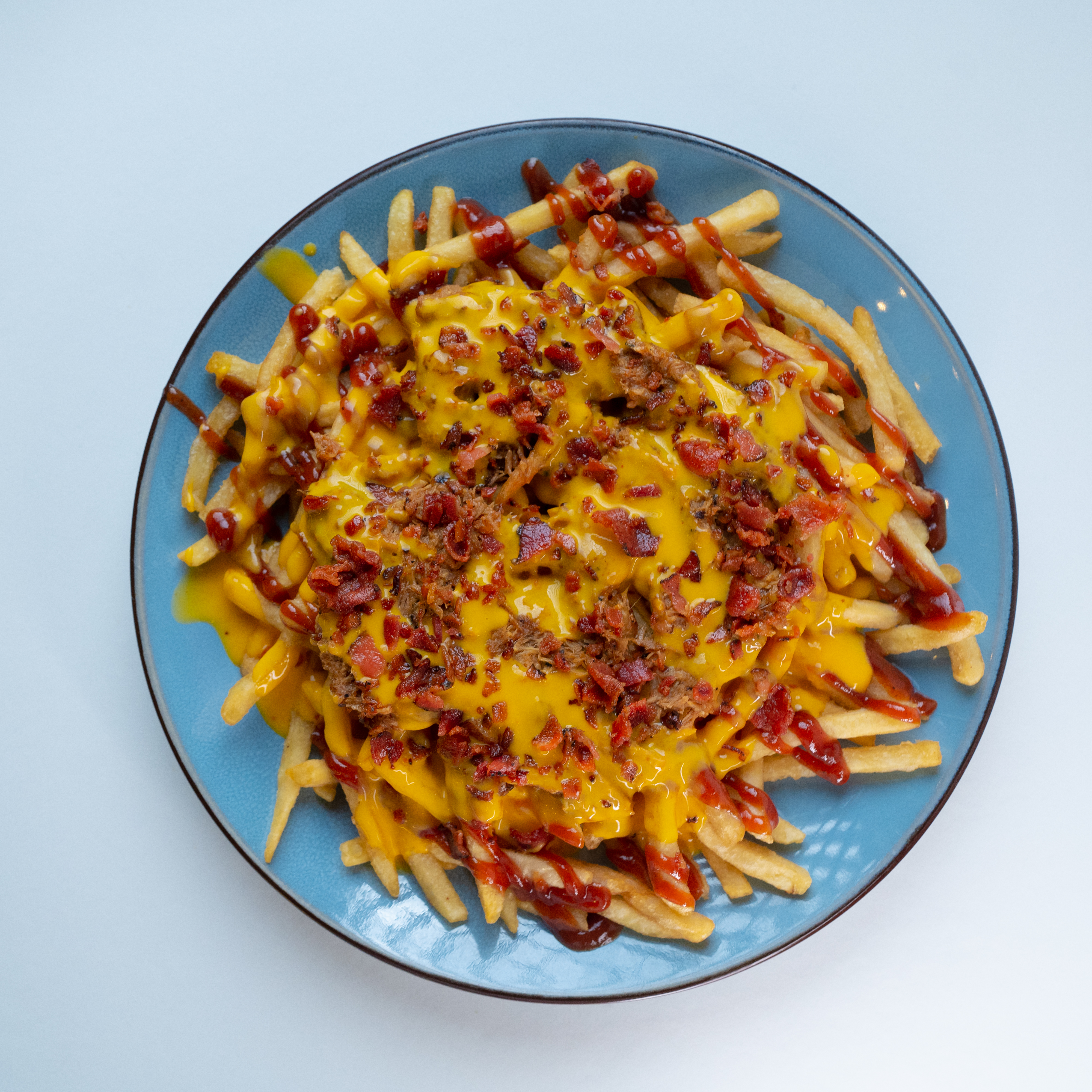 Cerdo BBQ, salsa queso y tocino