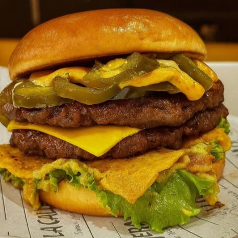 Pan brioche, chipotle, lechuga, guacamole al mejor estilo mexicano, tortillitas, dos tortas de ¼ libra de carne, queso amarillo, cebolla, chiles jalapeños y salsa chipotle