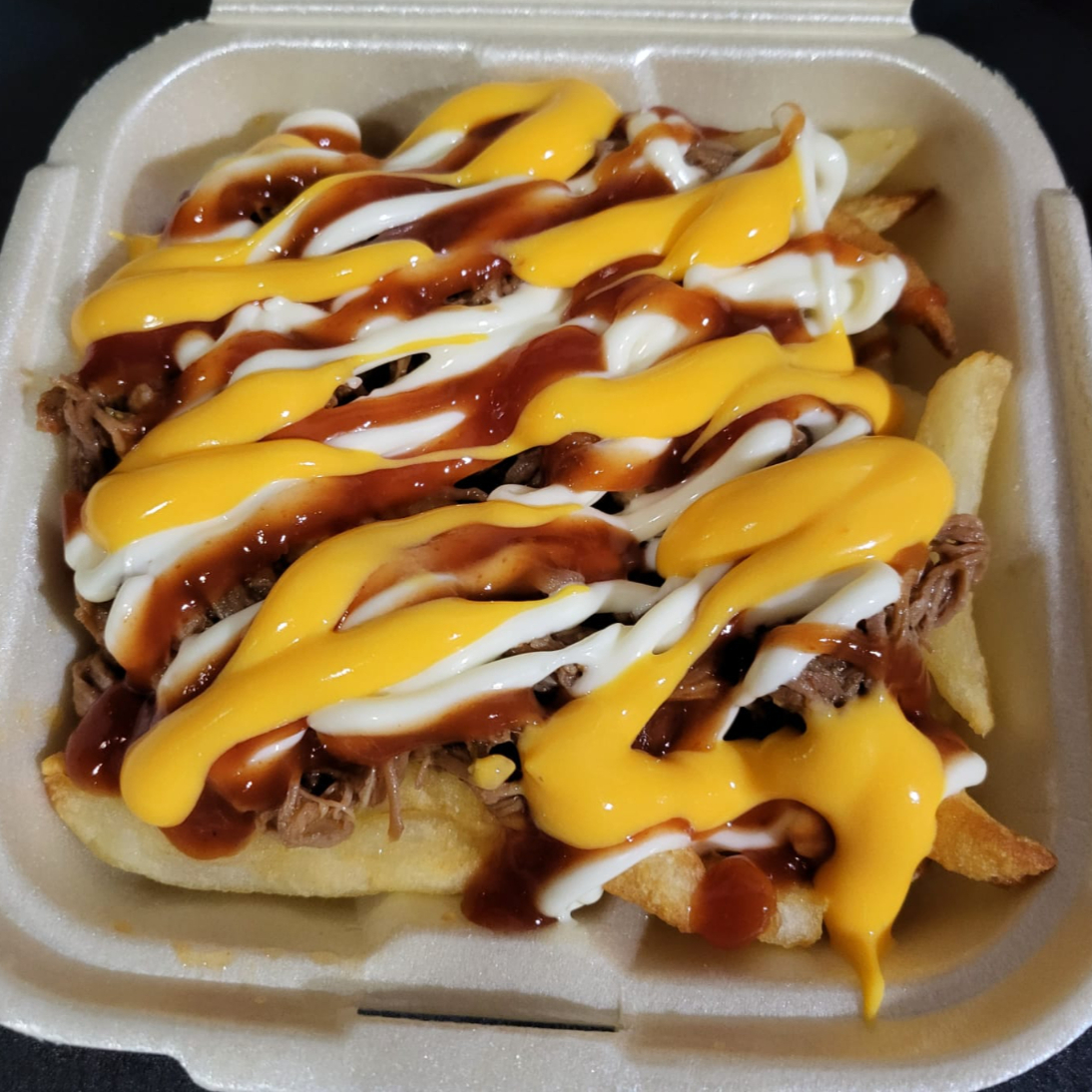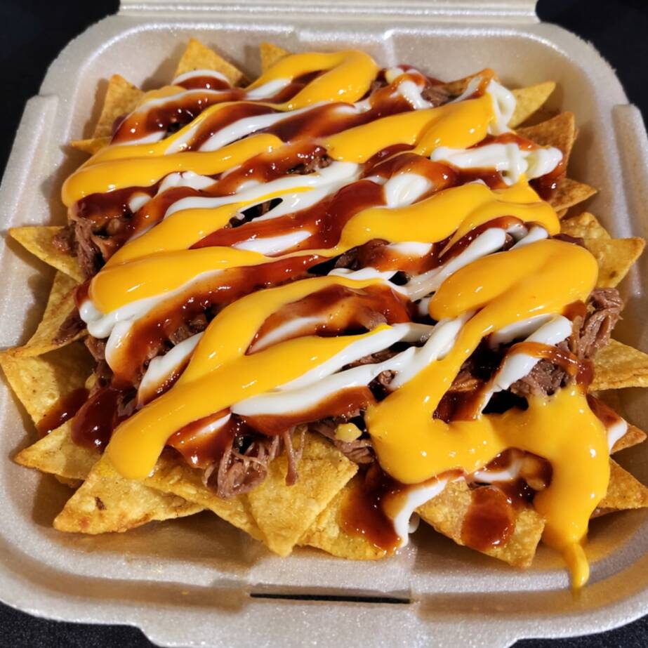 Innovadora base de papas fritas cubiertas con ingredientes de nachos, queso y salsas.