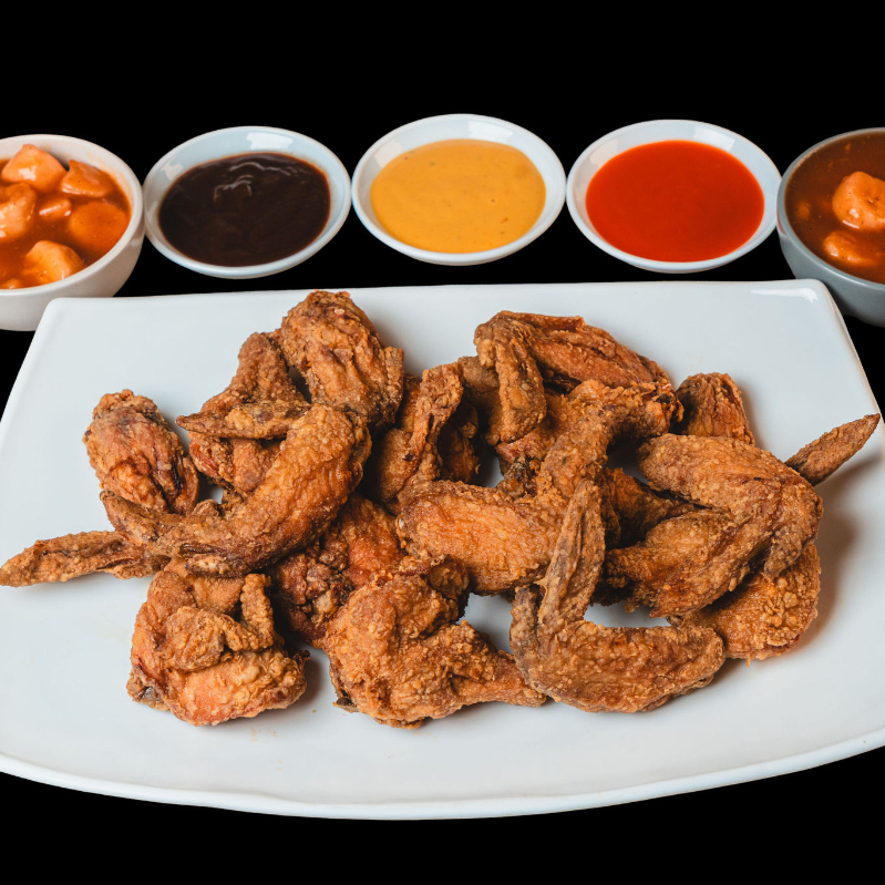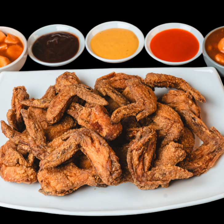 El sabor de las alitas de pollos Papi, acompañadas de ceviche de plátano y salsas.
