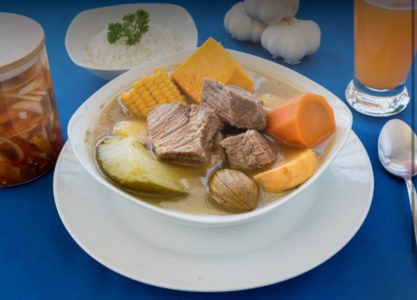 Cocido tradicional de caldo de res de más alta calidad, acompañado de abundantes y variados trozos de verduras frescas en combinación de especias con sazón criollo que lo remontaran a las recetas de nuestras abuelas.