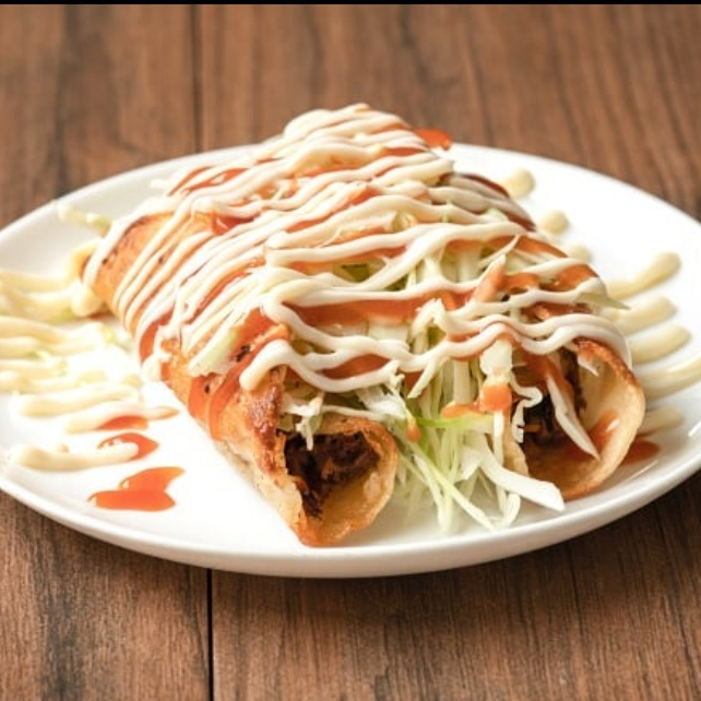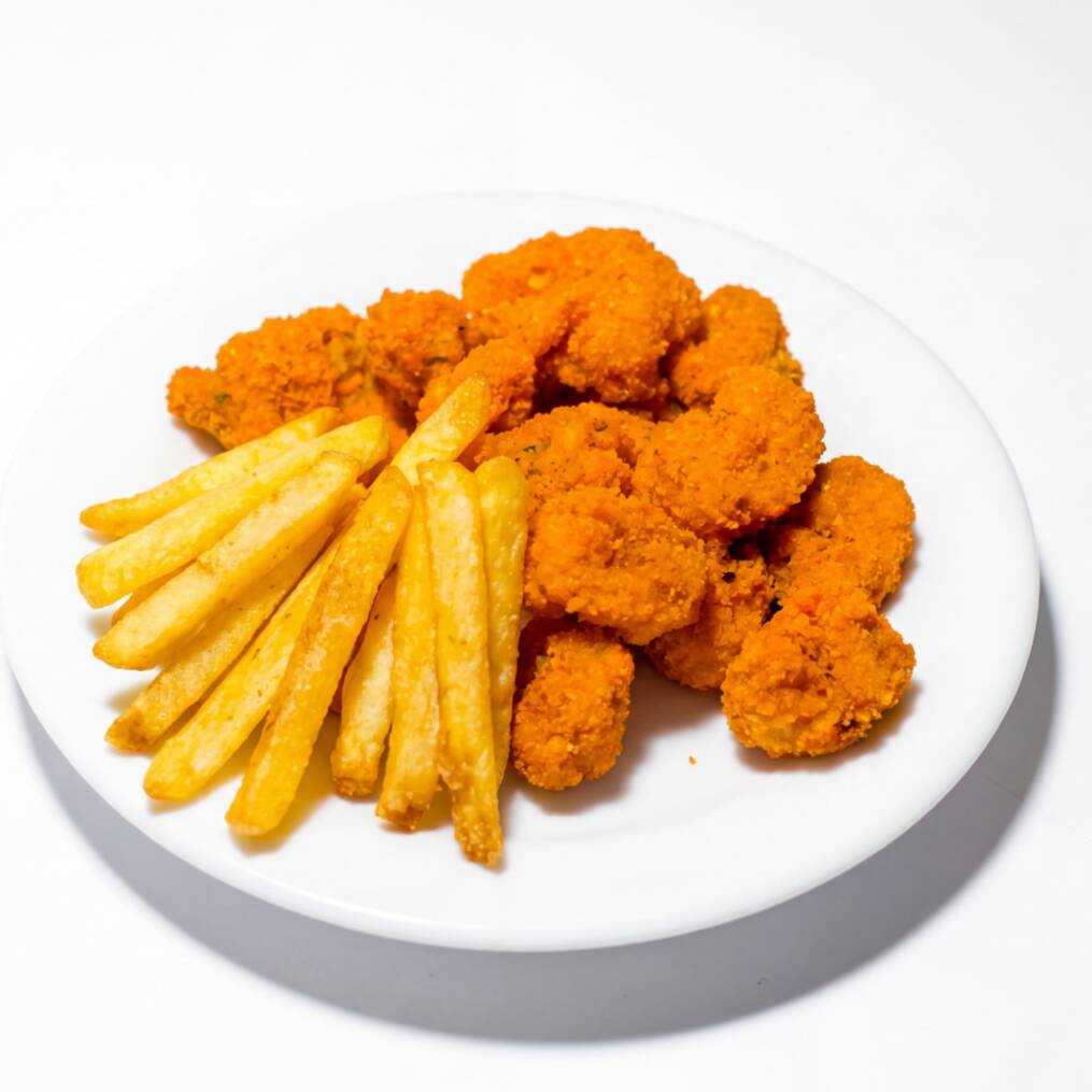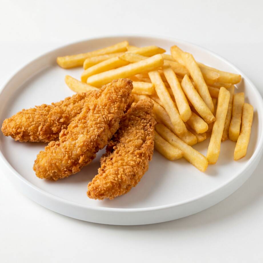 Pechuga de pollo empanizada, queso, lechuga, y cebolla caramelizada (incluye papas).