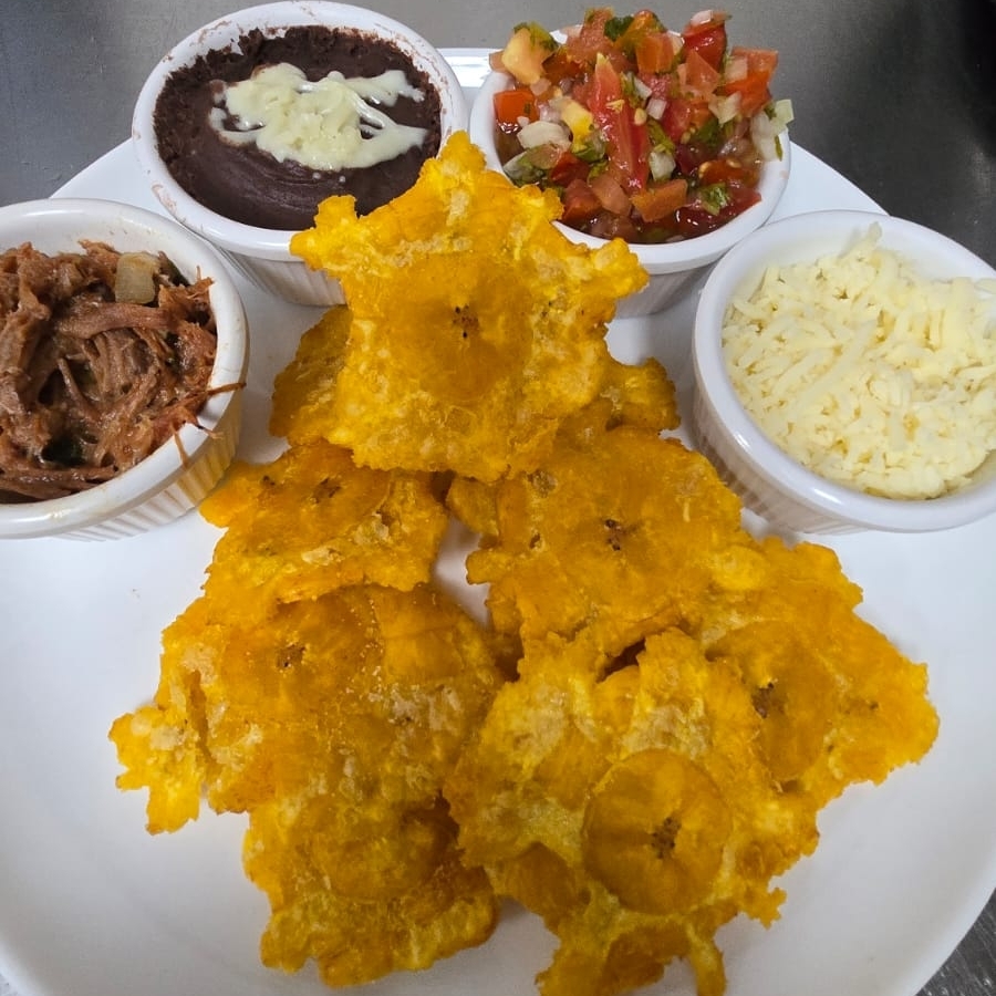 De 8 a 10 patacones con frijoles, pico de gallo y queso.