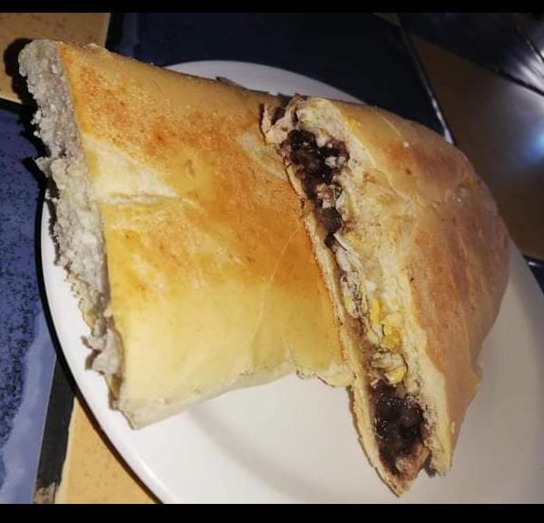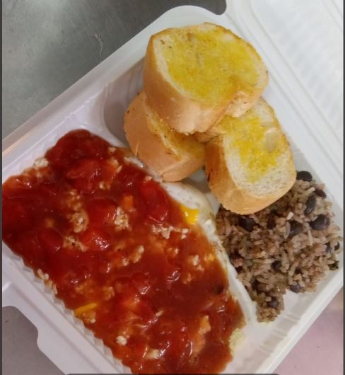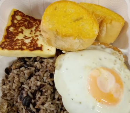 Pinto Con Carne en Salsa, Huevo, pan, platano maduro.