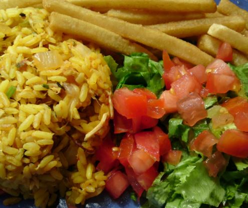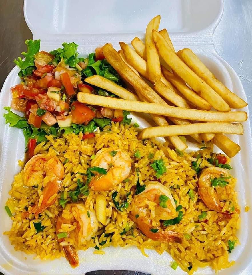 Arroz con Camarones + Papas + Refresco