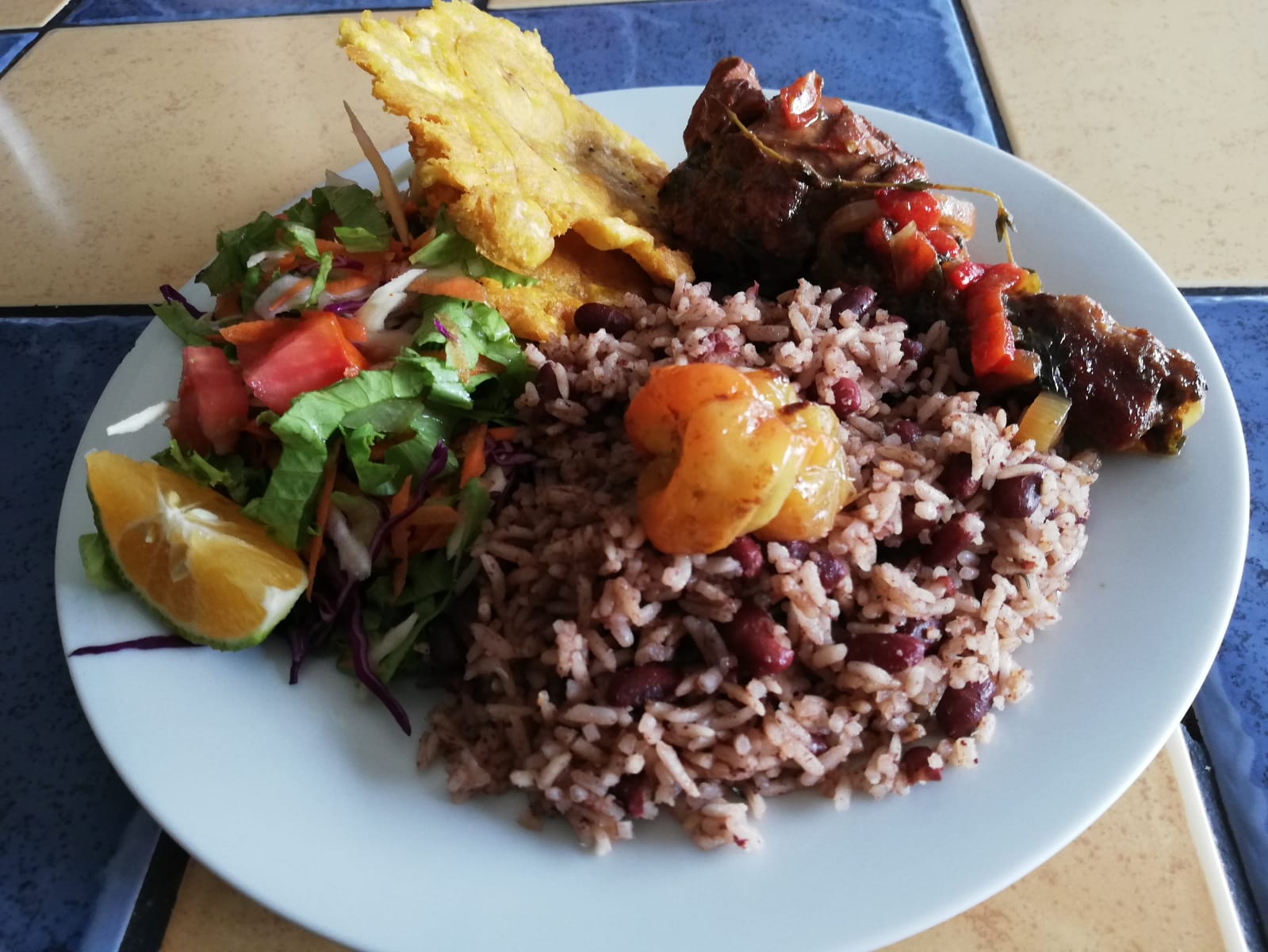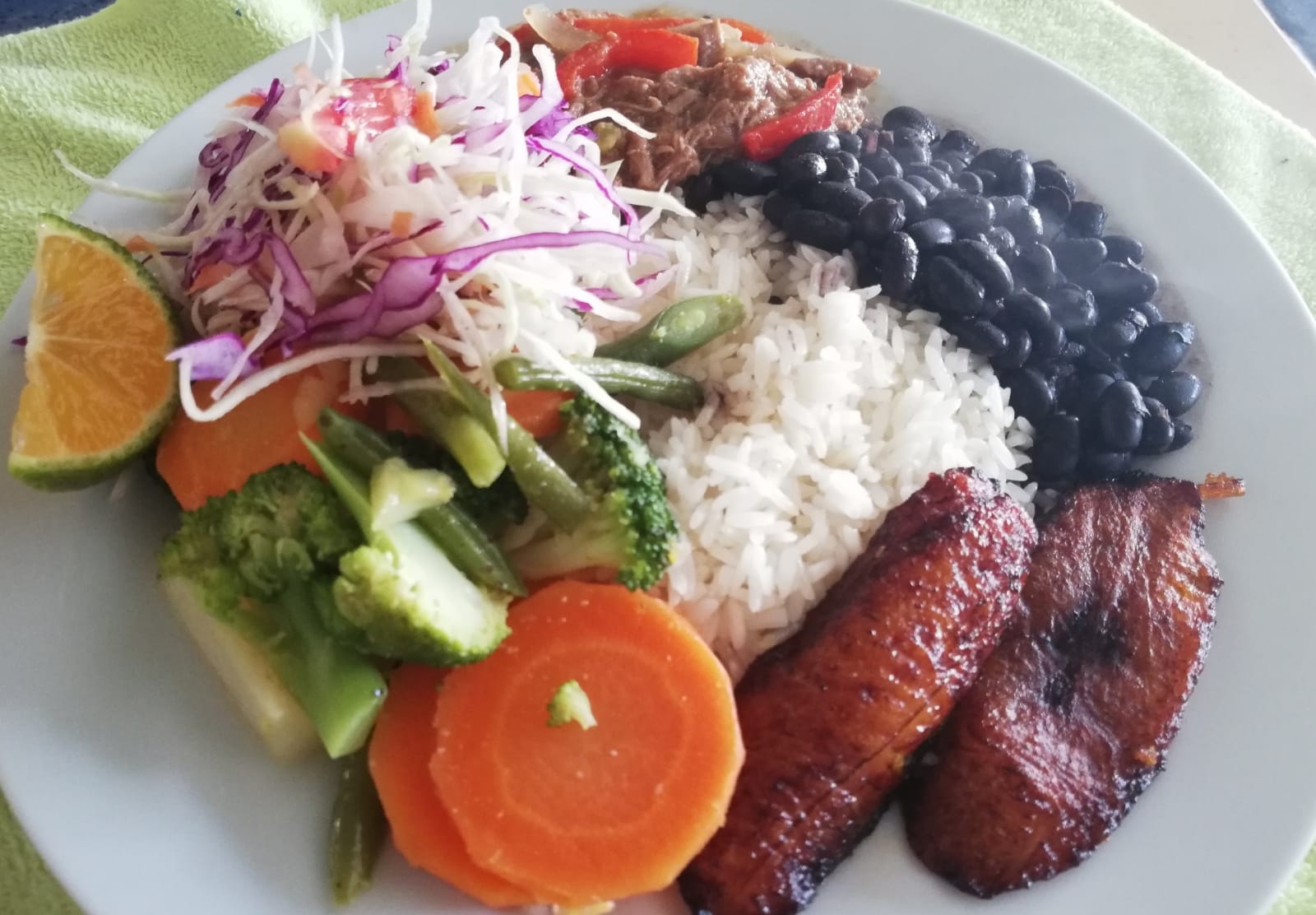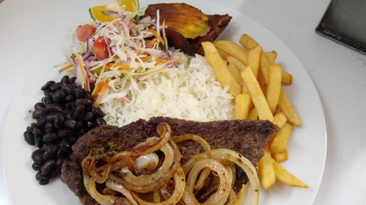Arroz frijoles plátano maduro ensalada y guarnición