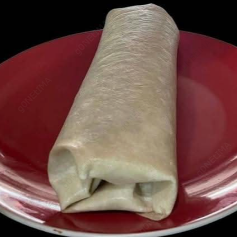 Tortilla grande de maíz arrollada con carne mechada, repollo, salsa de tomate y mayonesa casera más papas a la francesa.