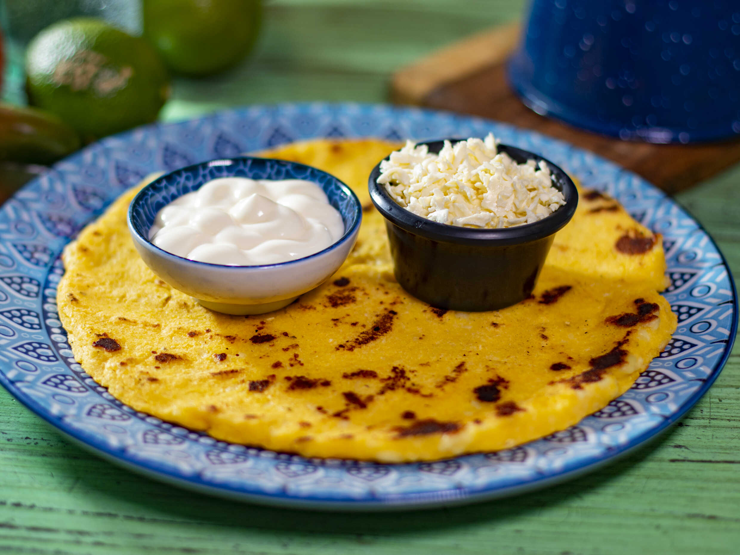 Rellenos de queso mozzarella, jamón, hongos, chile dulce, cebolla, acompañado con tortillas.
