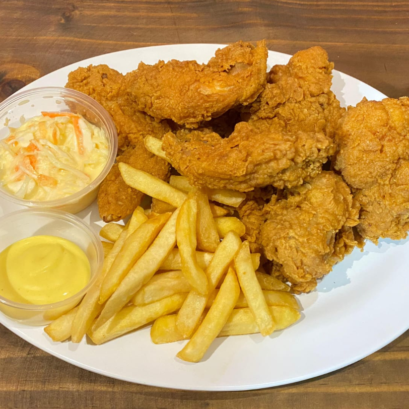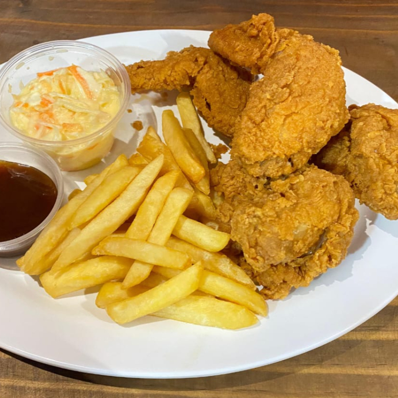 Alitas, papas, ensalada de repollo Dulce +Refresco