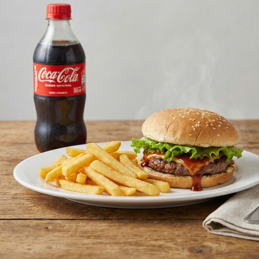 Hamburguesa Queen + Papas + Coca Cola 355ml