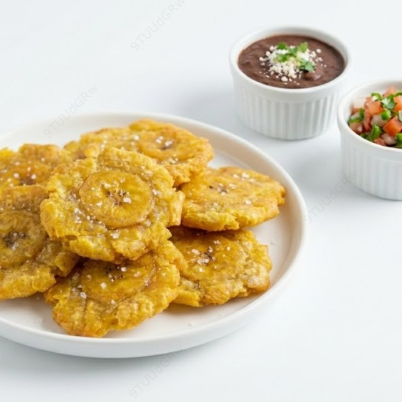 Patacones con frijoles molidos y pico de gallo 6 unidaes.