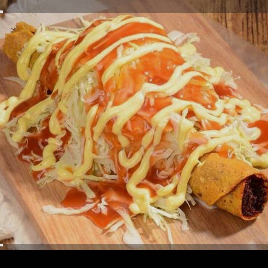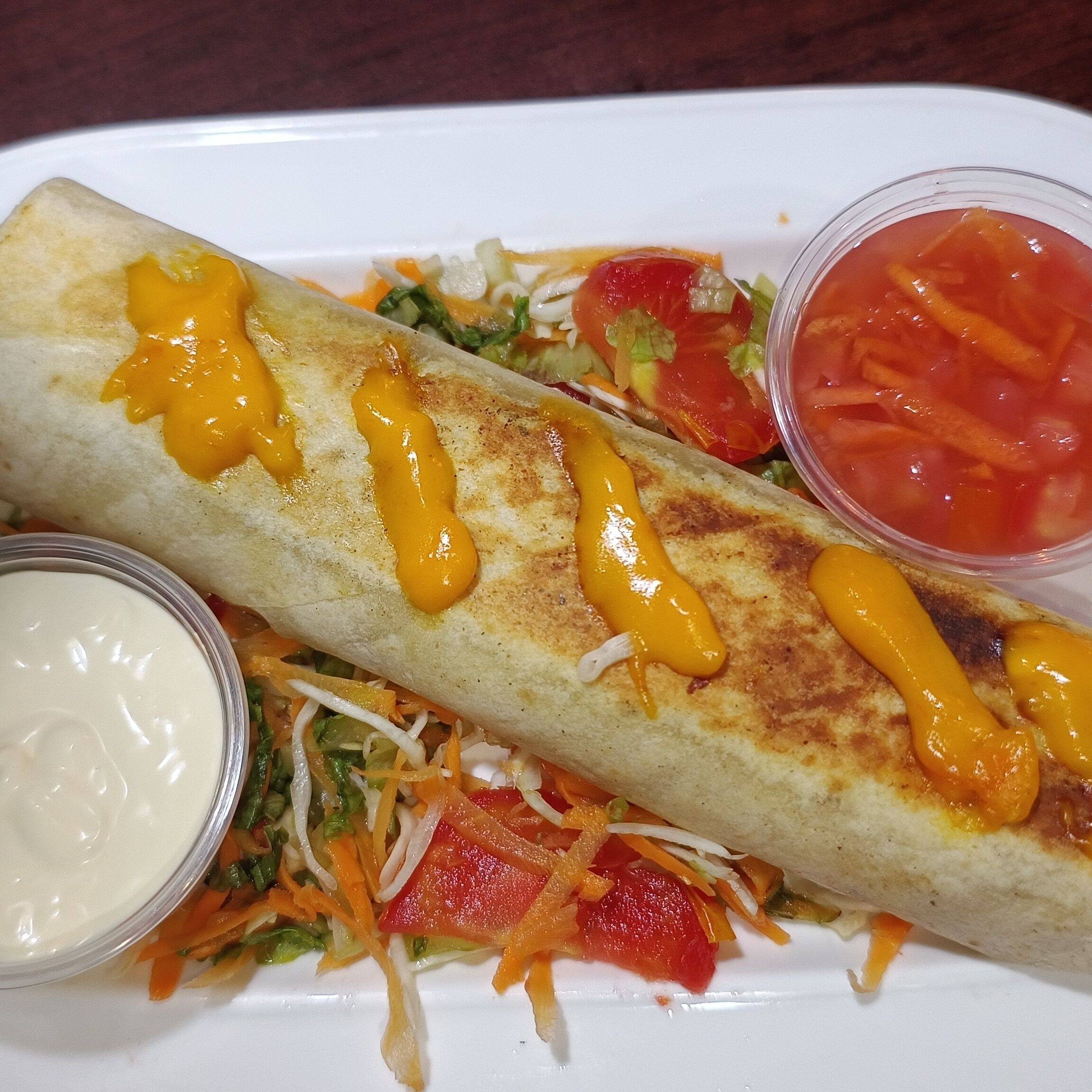 Carne o pollo, con chimichurri, salsa de queso y frijoles molidos.