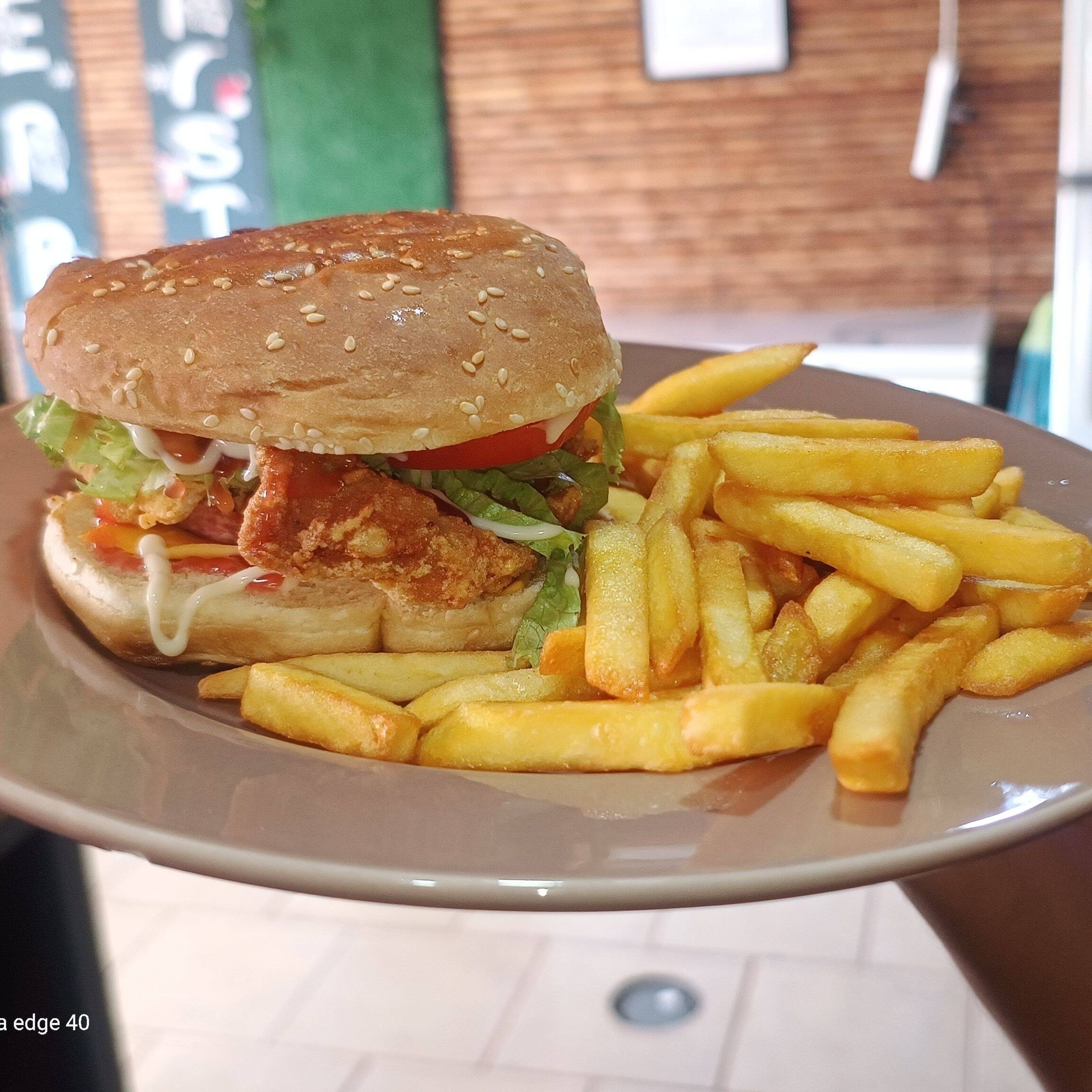 Incluye papas fritas, pan, lechuga, tomate y salsas.