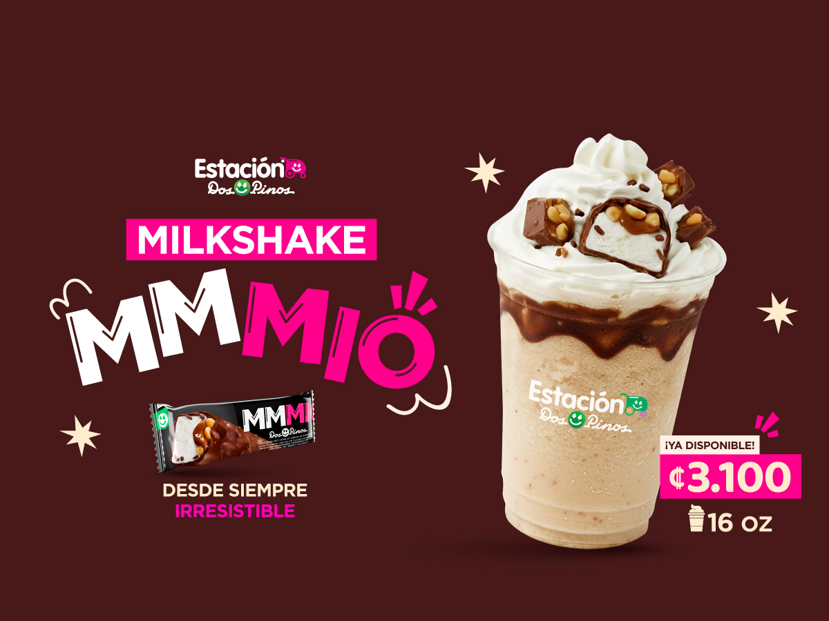 Un milkshake a base del delicioso e icónico helado Mmmio, combinado con helado de vainilla y con un topping de trozos de helado Mmmio.
