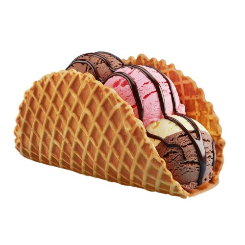 Una deliciosa combinación de un waffle en forma de taco, relleno de helado y topping a elegir.