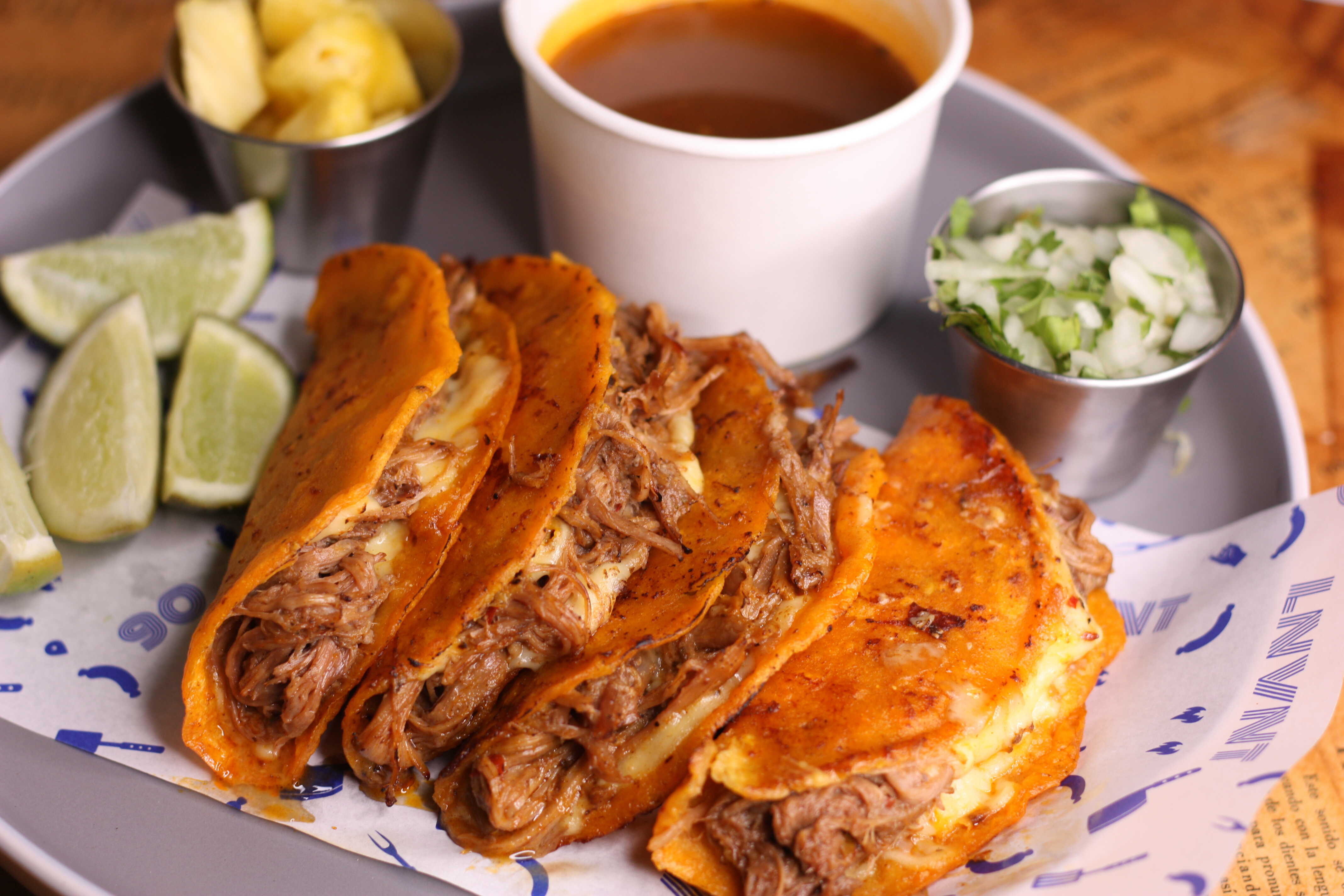 Si alguna vez has probado los tacos de birria, probablemente se inspiraron en los nuestros. Estás preparado para probar los mejores? Acompañados de consomé, (5 oz) piña, 2 oz culantro con cebolla, 1 oz chile y limón.