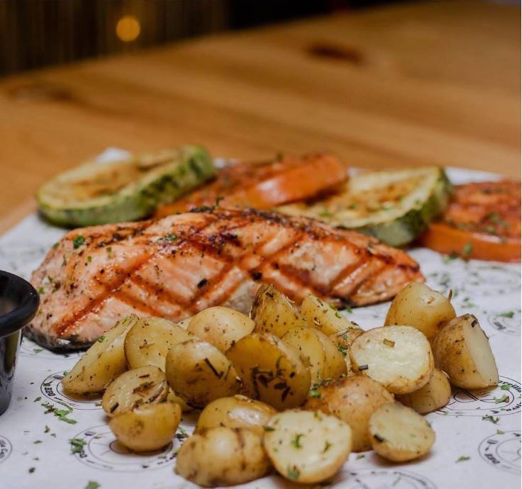 250g. de salmón a la parrilla y dos acompañamientos a elegir.