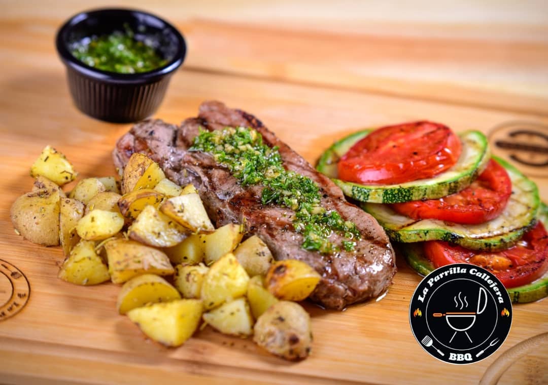 Corte de 300 g. de new york steak a la parrilla y dos acompañamientos a elegir.