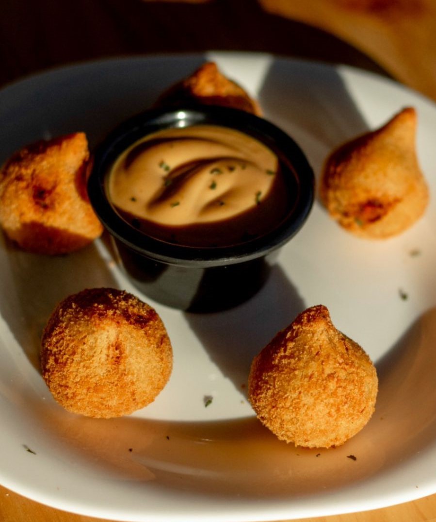 5 bocados brasileños rellenos de pollo desmechado