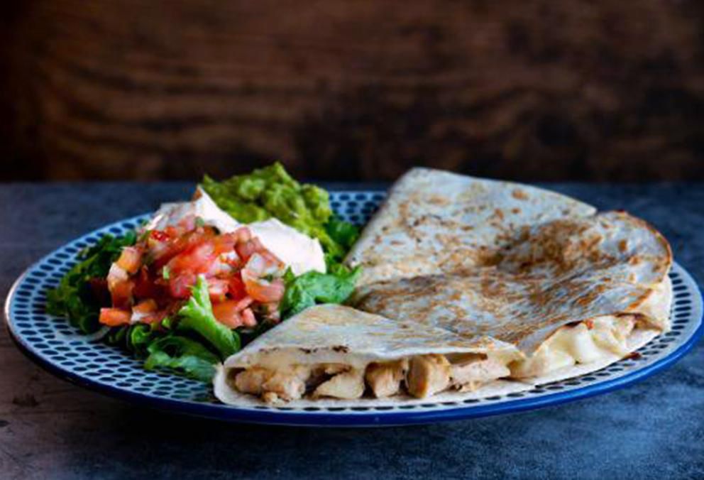 Tortilla de trigo, rellena de delicioso queso y la carne a elegir, acompañada de pico de gallo más guacamole.