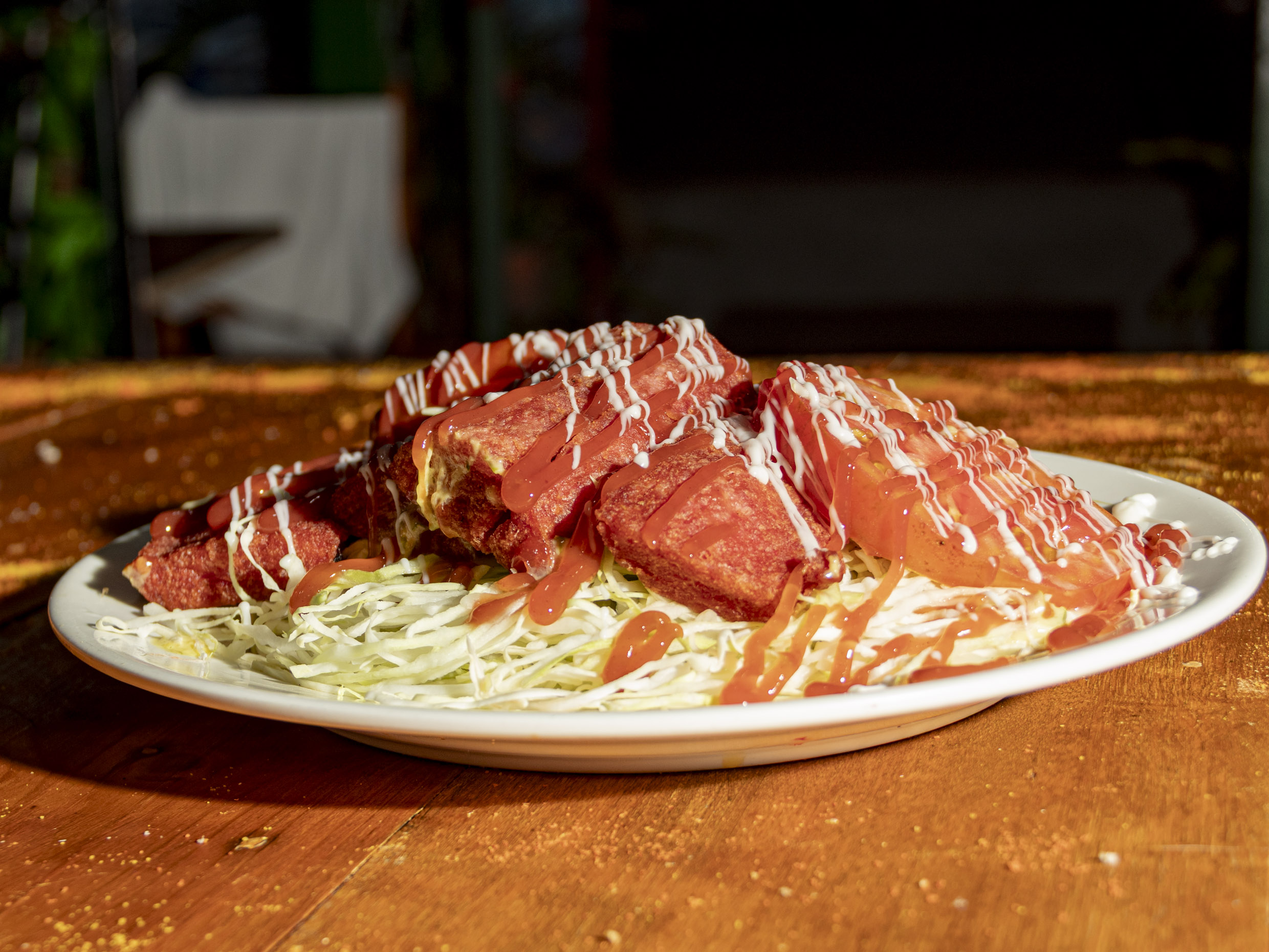 2 Tortillas, 4 salchichones, repollo, rodajas de tomate, salsas de la casa.
