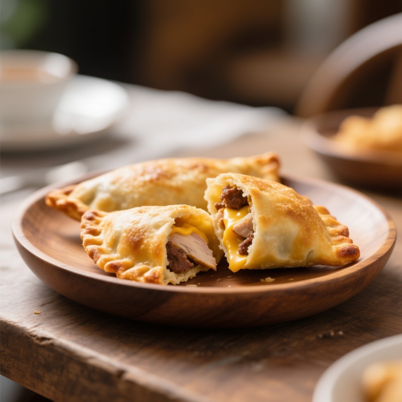 Masa dorada y crujiente rellena con tu elección favorita: carne, pollo, queso u otros sabores irresistibles. Calientita, ligera y perfecta para cualquier antojo