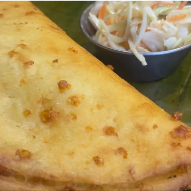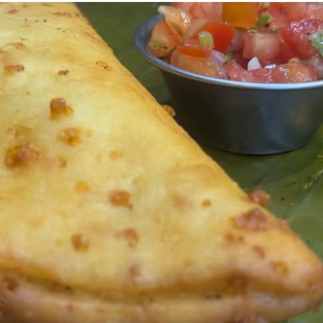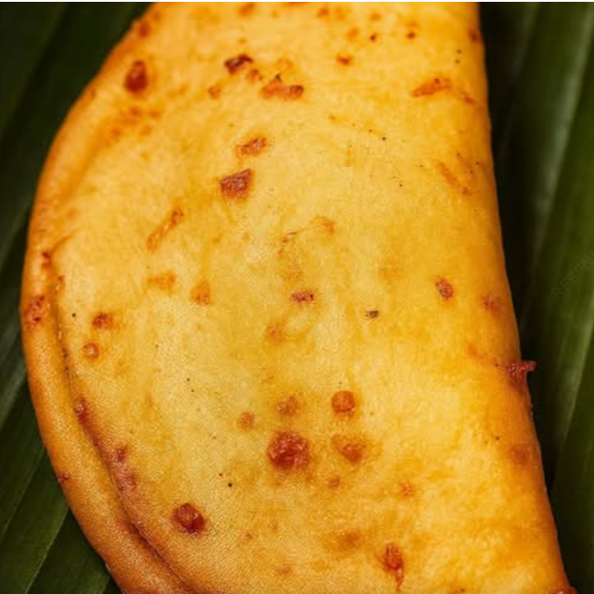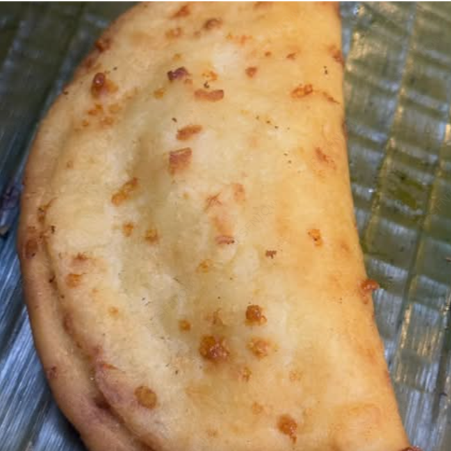 Empanada de masa rellena de chicharrón de cerdo, sabor tradicional tico. Perfecta para calmar el antojo.