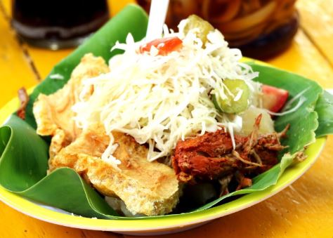 250 g De chicharrón de carne y concha, yuca, pico de gallo, repollo y chilera.