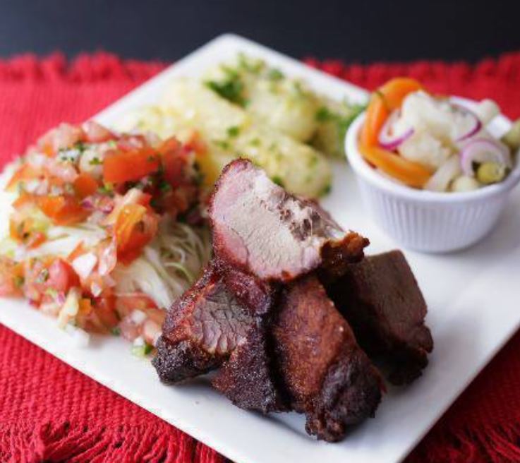 Exquisita costilla de cerdo, acompañada de yuca y chilera (cortesía de la casa).