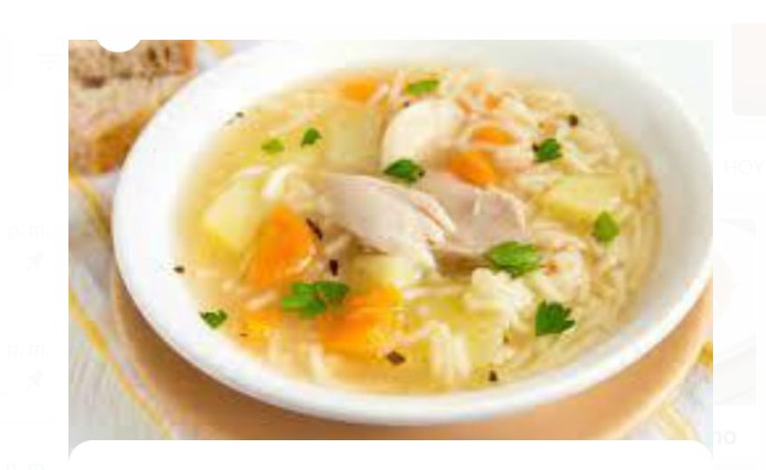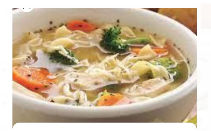 Sopa con Pollo, Verduras y Olores con Tallarín