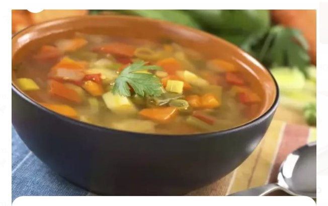 Sopa con Camarón, Pollo, Lechón, Verduras y Olores
