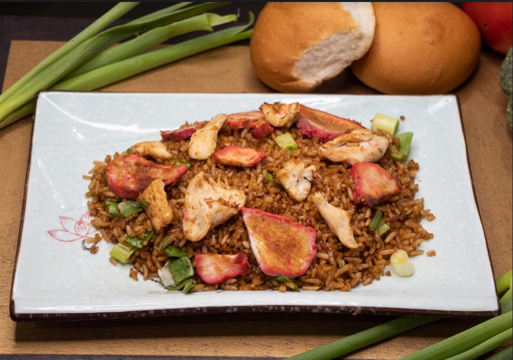 Con pollo, jamón, lechón, camarón, chorizo chino y verduras.