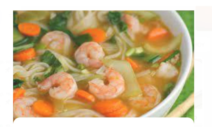 Sopa con Camarón, Verduras, Olores y Tallarín
