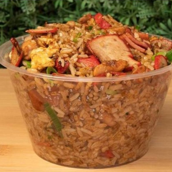 Papas fritas con carne mechada, tocineta, aguacate, frijoles molidos y salsas