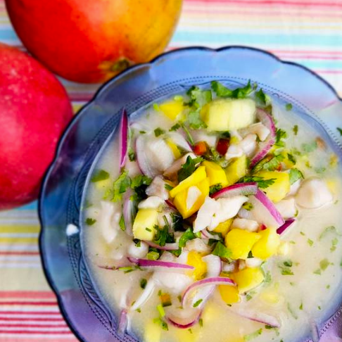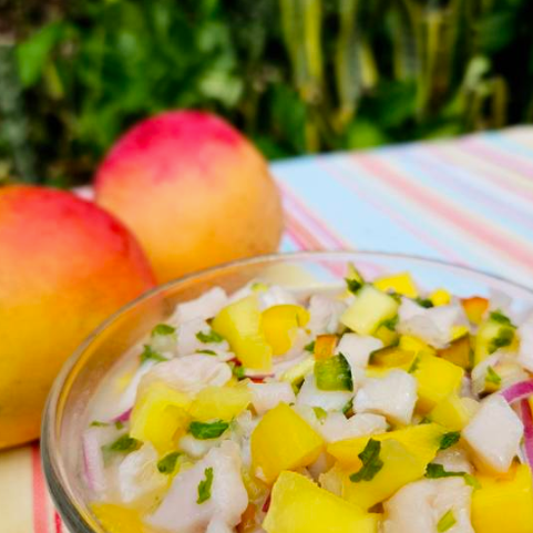 Combinamos pescado fresco marinado en jugo de limón, mango y un toque de coco para una experiencia más dulce al paladar, sazonado con hierbas y especias.