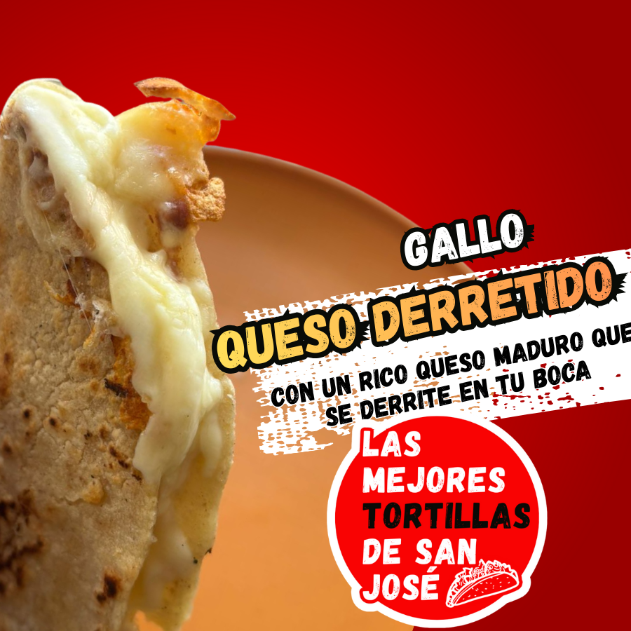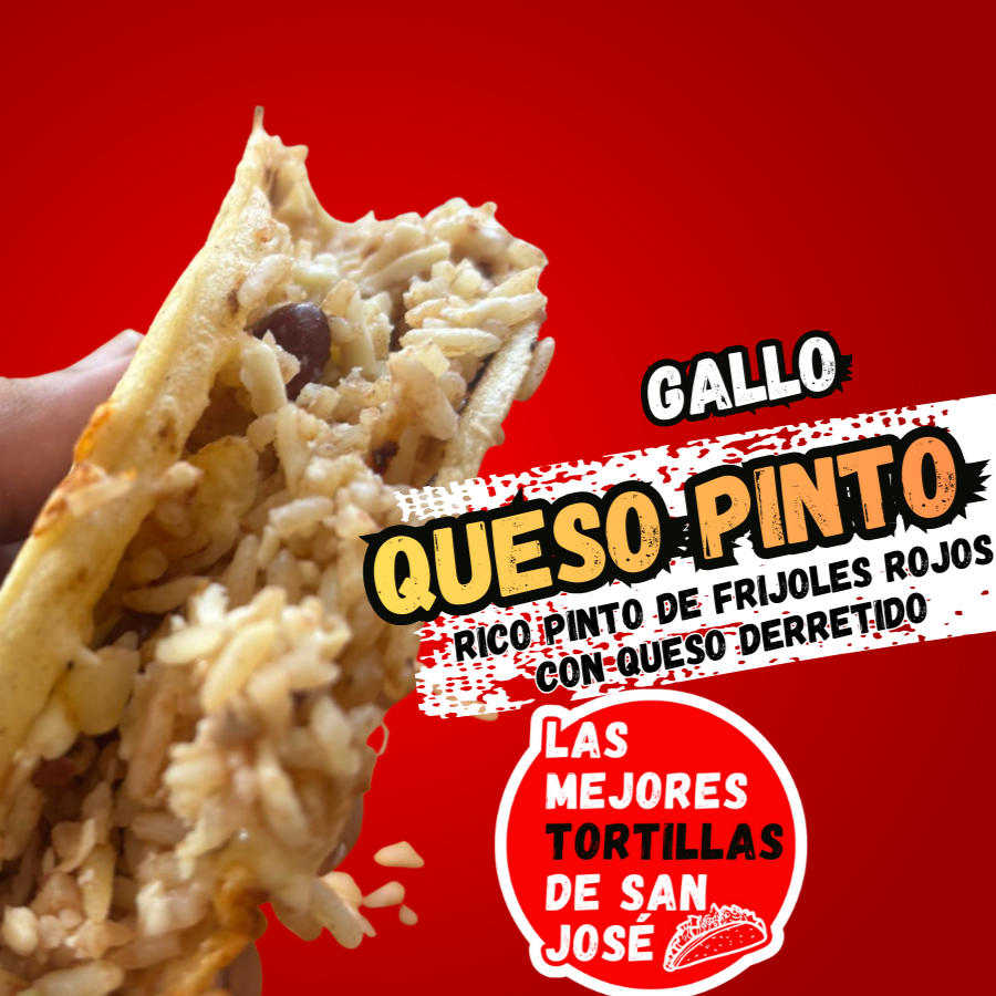 Un clásico tico en su máxima expresión: tortilla palmeada recién hecha, rellena con gallo pinto bien sazonado y una capa generosa de queso derretido que se estira con cada mordida. Sabor casero, auténtico y perfecto para cualquier momento del día.