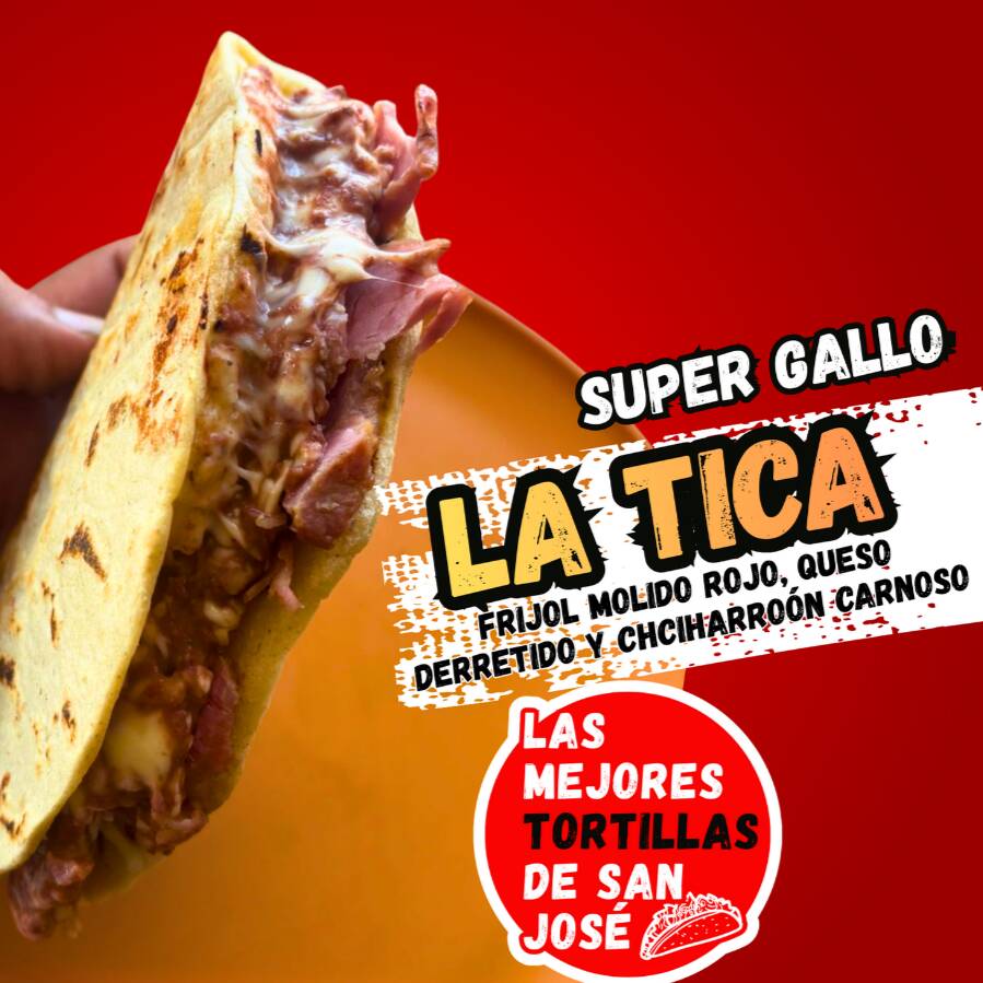 El gallo más tico de todos: tortilla palmeada grande y bien prensada con frijol molido rojo, queso maduro derretido y un chicharrón carnoso que le da el toque perfecto. Una mezcla poderosa, auténtica y llena de sabor casero. ¡Un gallo HEMBRA que se respeta! EN HONOR A NUESTRA MUJERES TICAS