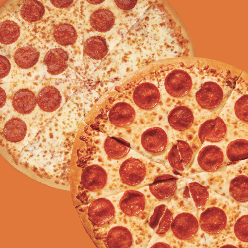 2 Pizzas grandes14" de Pepperoni, Queso o Jamón.