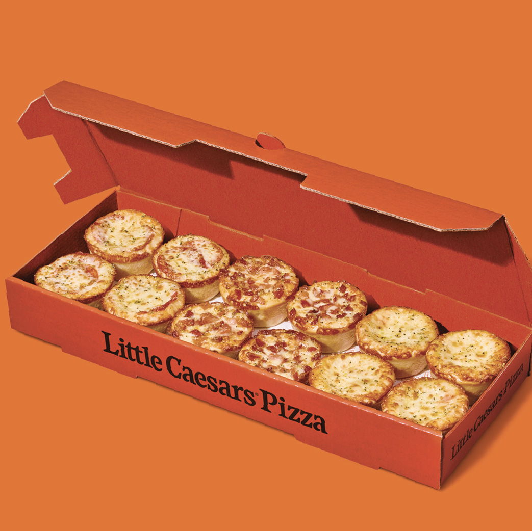 Caja con 12 panecillos rellenos para compartir. Incluye 3 sabores: 4 panecillos rellenos de pepperoni, 4 rellenos de 3 quesos y 4 panecillos del nuevo sabor bacon & salsa blanca.