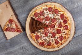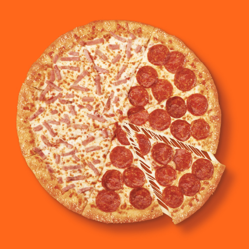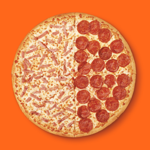 Pizza grande doble sabor (mitad extra jamón y mitad extra pepperoni).