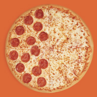 Una pizza Grande, mitad Queso y mitad Pepperoni