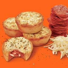 4 Panecillos Rellenos de Pepperoni y cubiertos con Mantequilla de Ajo y Queso Parmesano.