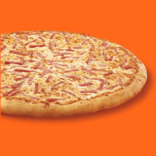 Pizza grande 14" jamón. Preparada con nuestra emblemática mezcla de quesos y deliciosa salsa de tomates recién cortados.