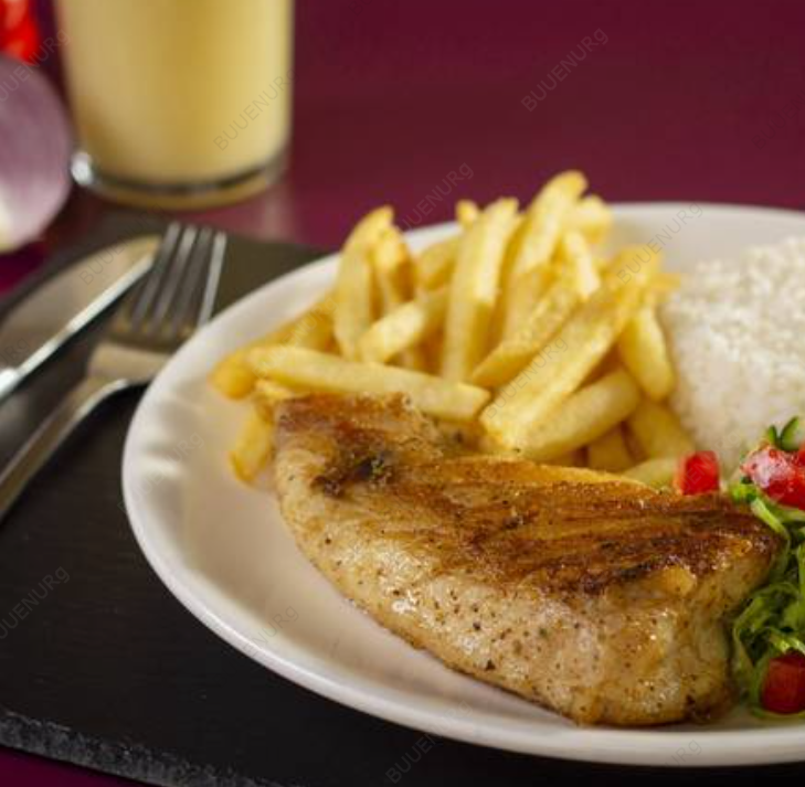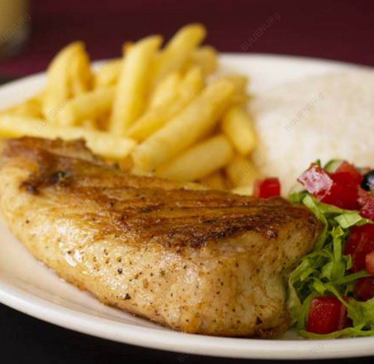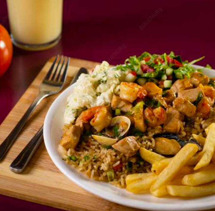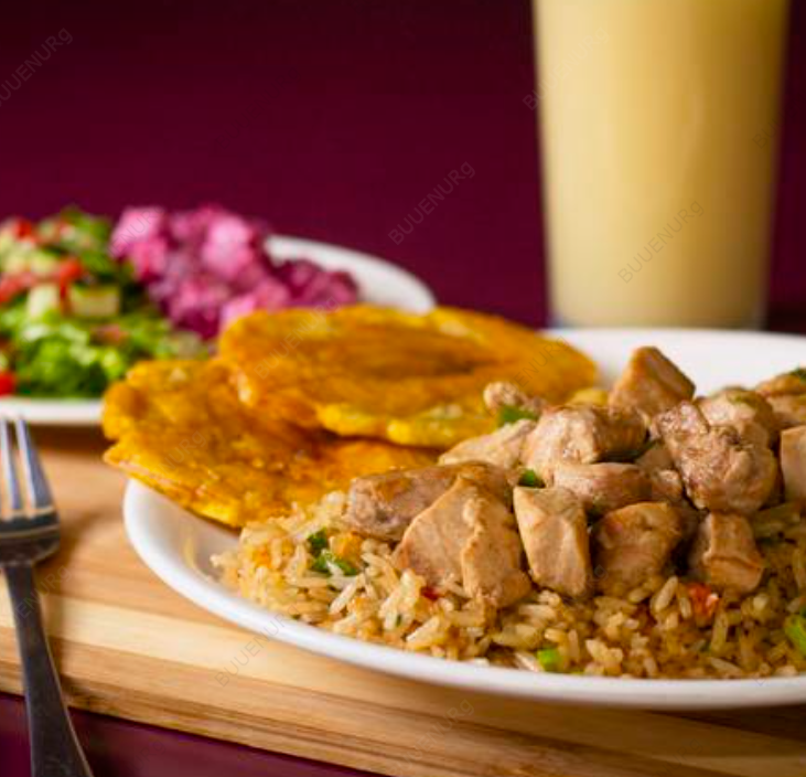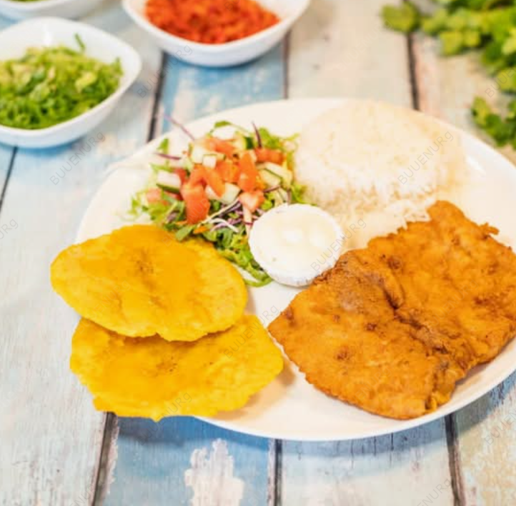 Con papas o patacones y ensalada, viene con tripulación a elegir.